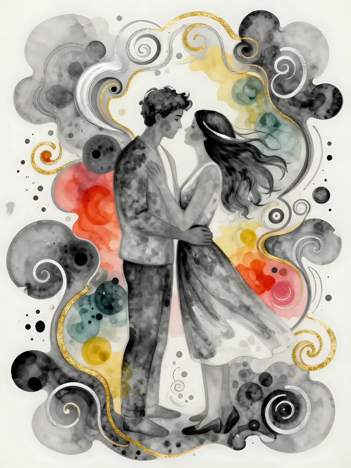 Romantic Embrace Amidst Swirls